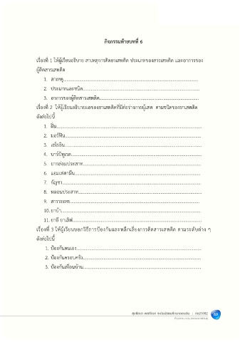 เรื่องที่ 2 ใหผูเรียนอธิบายผลของยาเสพติดที่มีตอรางกายผูเสพ ตามชนิดของยาเสพติด
