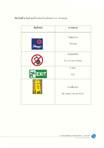 0 ! + :# ! ( 8 #&&S4&1 T& & 1' =; 2 ! ! 8 #&& hPFLJHdM& 8( ( & {P&GPH&QFE&KPtJME& ( & JH& = & sE&XdDEeQM&Pe&\EH&RMPPD& & & & & ภาษาอังกฤษพื้นฐาน ระดับประถมศึกษา : พต11001 105 ส�ำนักงำน กศน.จังหวัดกำฬสินธุ์