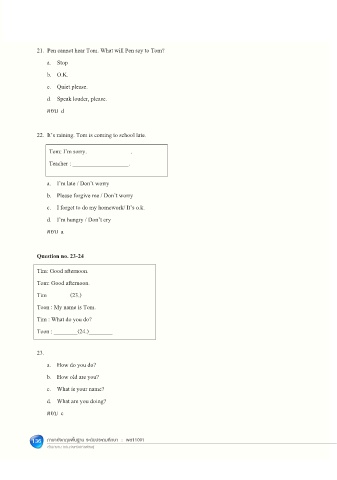 21. Pen cannot hear Tom. What will Pen say to Tom?