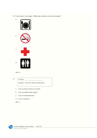 18. Your friend is very hungry. Which sign can help you find a restaurant?