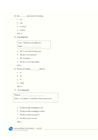 24. She_________him tomorrow morning.