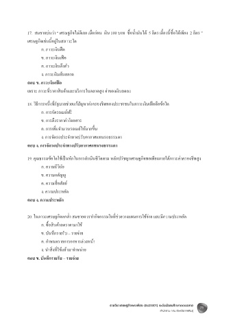 17. สมชายบ่นว่า “ เศรษฐกิจไม่ดีเลย เมื�อก่อน เงิน 100 บาท ซื�อนํ�ามันได้ 5 ลิตร เดี�ยวนี�ซื�อได้เพียง 2 ลิตร ”