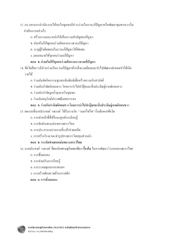 13. แนวทางการดําเนินงานให้คนในชุมชนมีส่วนร่วมในการแก้ปัญหาหรือพัฒนาชุมชนควรเริ�ม 17. ข้อใดเป็นลักษณะของชุมชนที�มีการดําเนินงานตามหลักปรัชญาของเศรษฐกิจพอเพียง