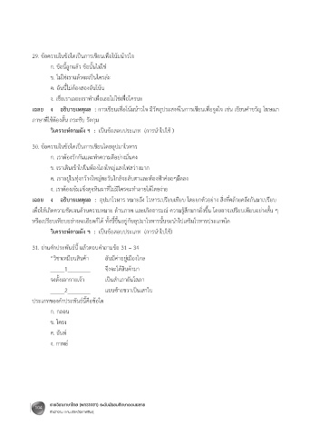 29. ข้อความในข้อใดเป็นการเขียนเพื่อโน้มน้าวใจ เฉลย ง อธิบายเหตุผล : กาพย์ เป็นค าประพันธ์ชนิดหนึ่งที่บังคับจ านวนค าและสัมผัส จัดวรรคต่างจากกลอน