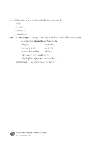 60. ข้อใดเป็นการน าความรู้ภาษาไทยด้านการเขียนไปใช้ในการประกอบอาชีพ &