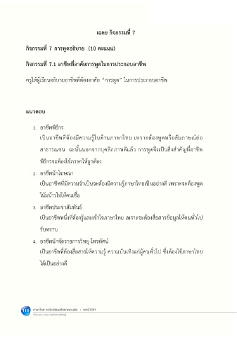กิจกรรมที่ 7.1 อาชีพที่อาศัยการพูดในการประกอบอาชีพ