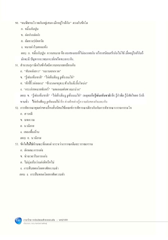 50. “คนที่ชอบวิวาทกันอยู่เสมอ เมื่ออยู่ใกล้กัน” ตรงกับข้อใด 54. ค าประพันธ์ต่อไปนี้มีคุณค่าในด้านใด