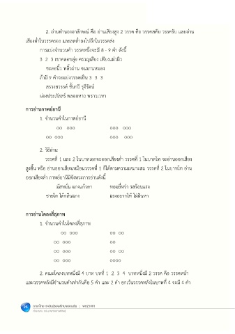 การแบงจํานวนคํา วรรคหนึ่งจะมี 8 - 9 คํา ดังนี้
