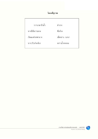 32 โคลงสี่สุภาพ จากนามาลิ่วล้ํา ลําบาง บางยี่เรือราพลาง พี่พรอง เรือแผงชวยพานาง เมี่ยงมาน นานา บางบรับคําคลอง คลาวน้ําตาคลอ ภาษาไทย ระดับมัธยมศึกษาตอนต้น : พท21001 39 ส�ำนักงำน กศน.จังหวัดกำฬสินธุ์