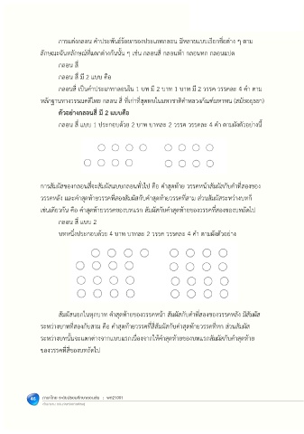 บทหนึ่งประกอบดวย 4 บาท บาทละ 2 วรรค วรรคละ 4 คํา ตามผังตัวอยาง