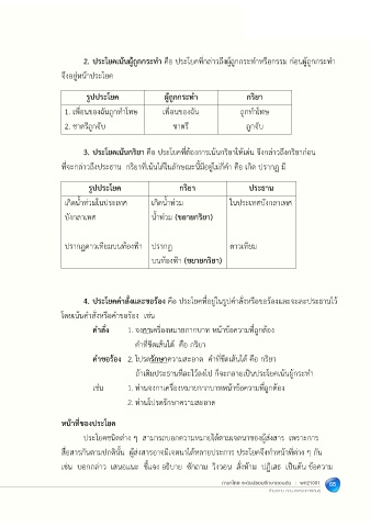 2. ประโยคเนนผูถูกกระทํา คือ ประโยคที่กลาวถึงผูถูกกระทําหรือกรรม กอนผูถูกกระทํา