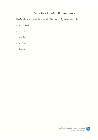 กิจกรรมทายบทที่ 5 หลักการใชภาษา (10 คะแนน)