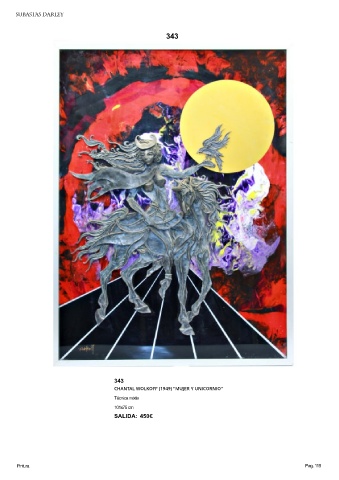 SUBASTAS DARLEY 343 343 CHANTAL WOLKOFF (1949) "MUJER Y UNICORNIO" Técnica mixta 101x75cm SALIDA: 450€ Pintura Pag. 119