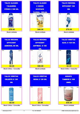 Distribuidora P.R.O. 11 Tel.: 0351-458-8927 E-Mail: distribuidorapro@hotmail.com