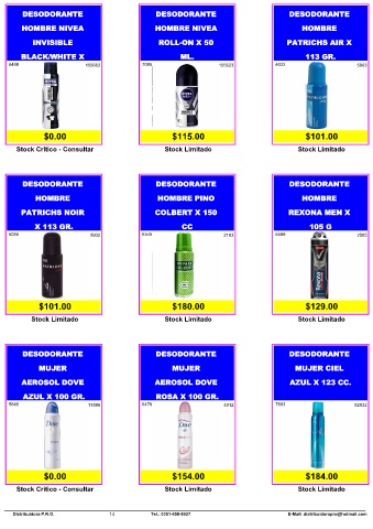 Distribuidora P.R.O. 14 Tel.: 0351-458-8927 E-Mail: distribuidorapro@hotmail.com