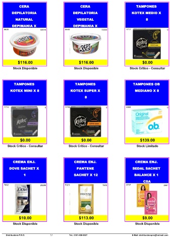 Distribuidora P.R.O. 17 Tel.: 0351-458-8927 E-Mail: distribuidorapro@hotmail.com