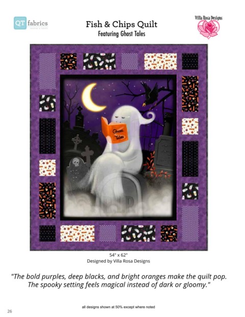 "The bold purples, deep blacks, and bright oranges make the quilt pop.