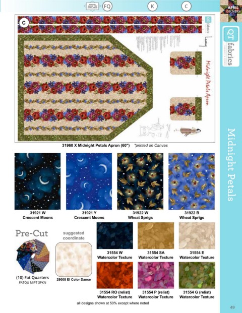 31960 X Midnight Petals Apron (60") *printed on Canvas Midnight Petals
