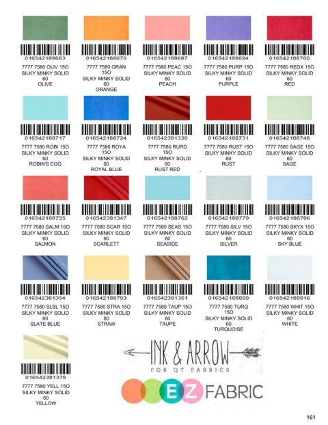 SILKY MINKY SOLID SILKY MINKY SOLID 7777 7580 PEAC 15O 7777 7580 PURP 15O 7777 7580 REDX 15O