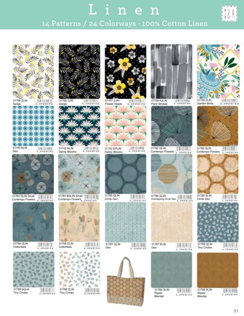 14 Patterns / 24 Colorways · 100% Cotton Linen arrow for I- organic option