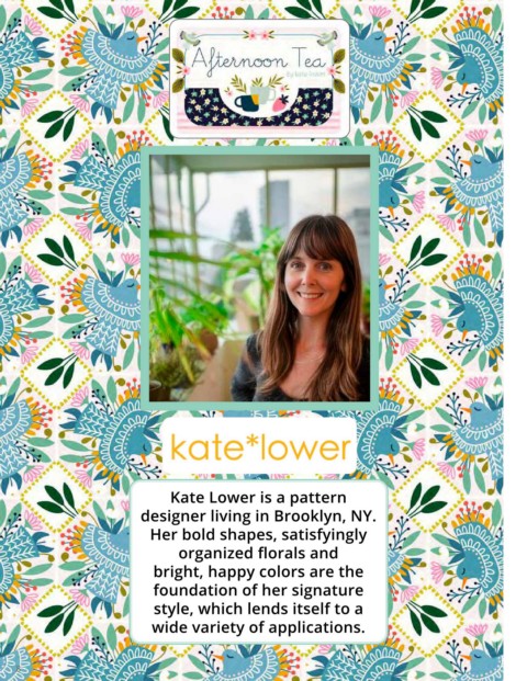 Kate Lower is a pattern designer living in Brooklyn, NY. Her bold shapes, satisfyingly organized florals and bright, happy colors are the foundation of her signature style, which lends itself to a wide variety of applications. 8