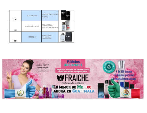 MADEROSA - MUSK - CXS PACO R FLORAL 192 AROMATICA - CXY HUGO BOSS VERDE - MADEROSA 193 ESPECIADA - CZZEGNA MADEROSA 194