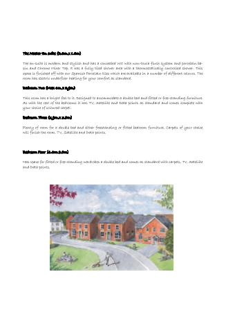 The en-suite is modern and stylish and has a concealed WC with non-touch flush system and porcelain ba- sin and Chrome Mixer Tap. It has a fully tiled shower area with a thermostatically controlled shower. This space is finished off with our Spanish Porcelain tiles which are available in a number of different colours. The room has electric underfloor heating for your comfort as standard.