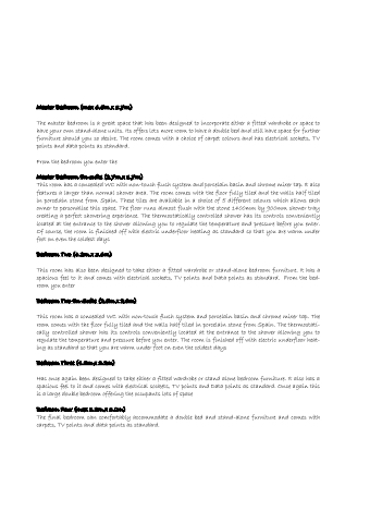 This room has also been designed to take either a fitted wardrobe or stand-alone bedroom furniture. It has a spacious feel to it and comes with electrical sockets, TV points and Data points as standard. From the bed- room you enter