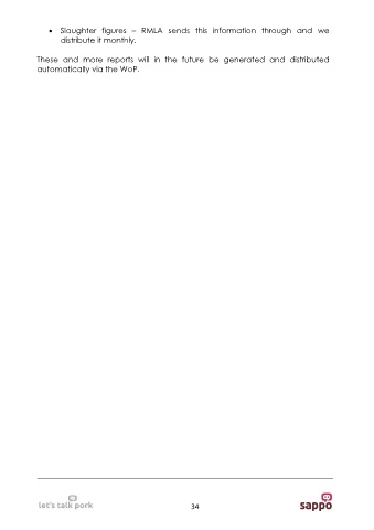 • Slaughter figures – RMLA sends this information through and we distribute it monthly. These and more reports will in the future be generated and distributed automatically via the WoP. 34