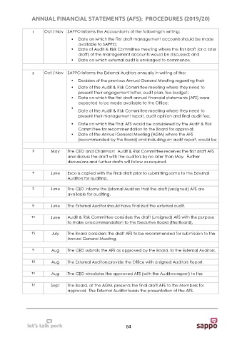 11 Aug The CEO circulates the approved AFS (with the Auditors report) to the
