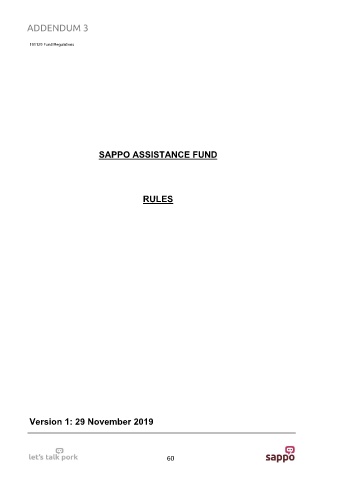 ADDENDUM 3 191129 Fund Regulations SAPPO ASSISTANCE FUND RULES Version 1: 29 November 2019 60