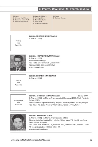 B. Pharm. 1952-1955: M. Pharm. 1955-57