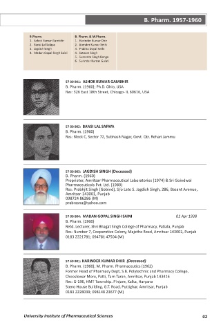 B. Pharm. (1960); M. Pharm. Pharmaceutics (1962)