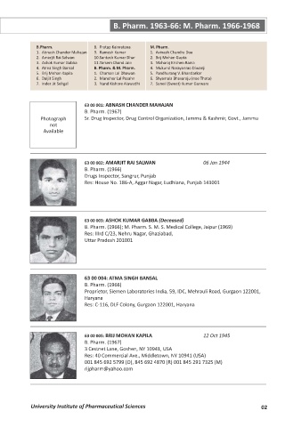 B. Pharm. 1963-66: M. Pharm. 1966-1968