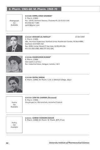 B. Pharm. 1965-68: M. Pharm. 1968-70