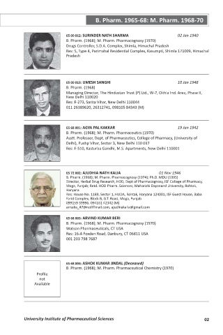 B. Pharm. 1965-68: M. Pharm. 1968-70