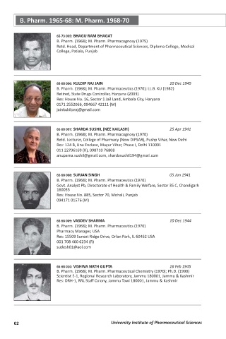 B. Pharm. 1965-68: M. Pharm. 1968-70