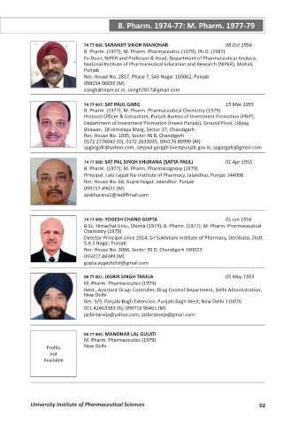 B. Pharm. 1974-77: M. Pharm. 1977-79