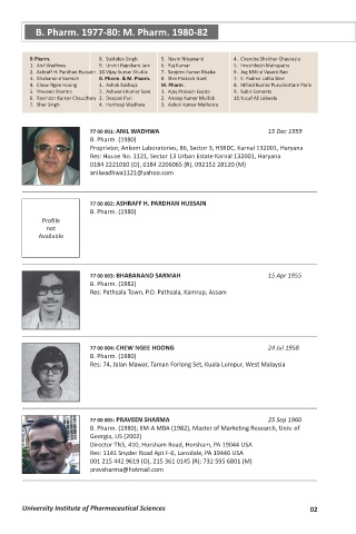 B. Pharm. 1977-80: M. Pharm. 1980-82