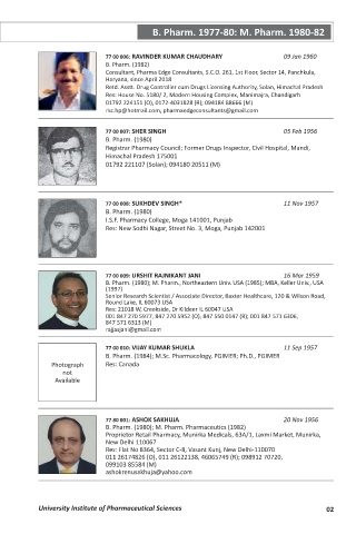 B. Pharm. 1977-80: M. Pharm. 1980-82