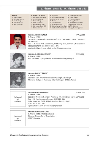 B. Pharm. 1978-81: M. Pharm. 1981-83