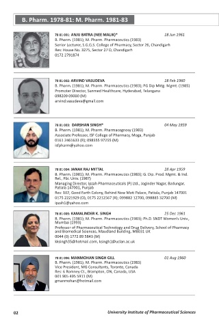 B. Pharm. 1978-81: M. Pharm. 1981-83
