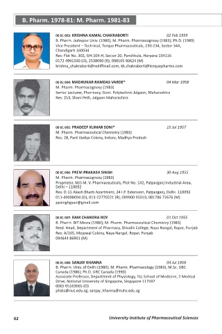 B. Pharm. 1978-81: M. Pharm. 1981-83