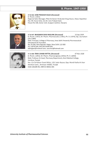 B. Pharm. (1951); M. Pharm. Pharmacognosy (1953); Ph. D. (1959)