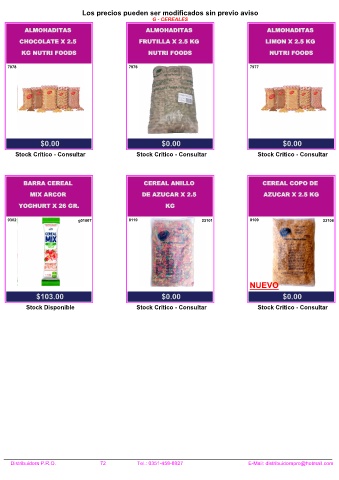 Distribuidora P.R.O. 72 Tel.: 0351-458-8927 E-Mail: distribuidorapro@hotmail.com