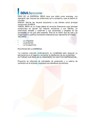 GIRO DE LA EMPRESA: BBVA tiene una visión como empresa, una