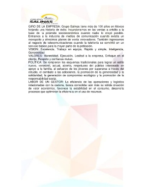 GIRO DE LA EMPRESA: Grupo Salinas tiene más de 100 años en México