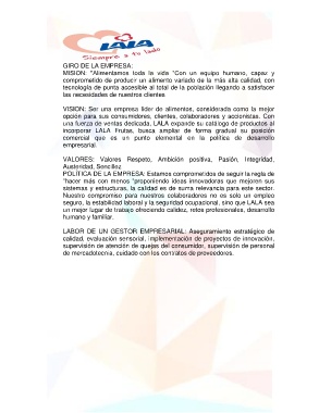VISION: Ser una empresa líder de alimentos, considerada como la mejor