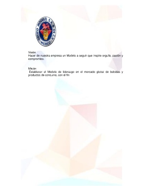 Visión Hacer de nuestra empresa un Modelo a seguir que inspire orgullo, pasión y compromiso. Misión Establecer el Modelo de liderazgo en el mercado global de bebidas y productos de consumo, con el fin