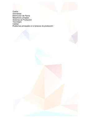 Costos Inventarios Distribución de Planta Maquinaria y Equipo Sistemas de Producción Tecnología Calidad Problemas principales en el proceso de producción